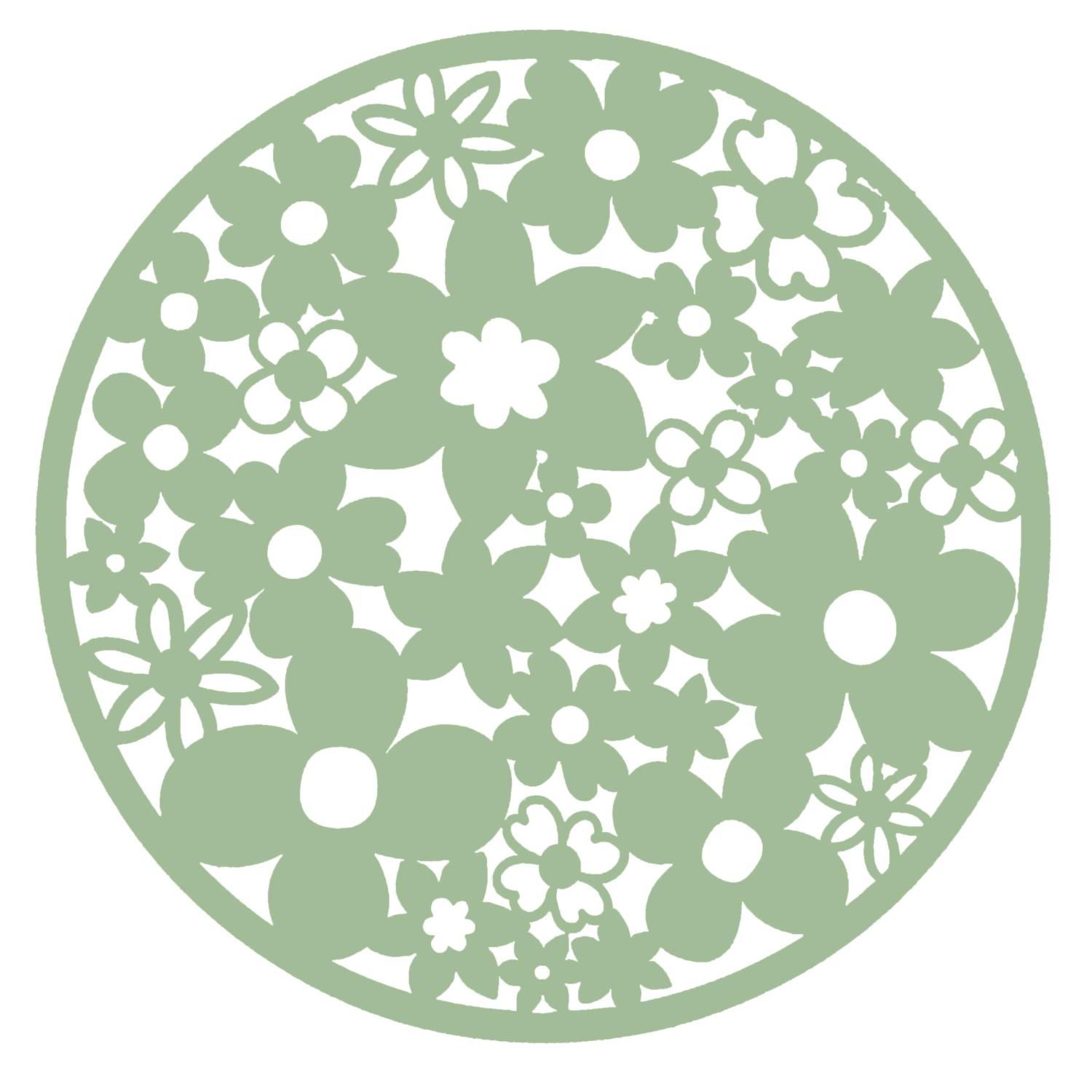 Rund Bordstablett, tallriksunderlägg BLOSSOM i filt med utstansade blommor i grönt