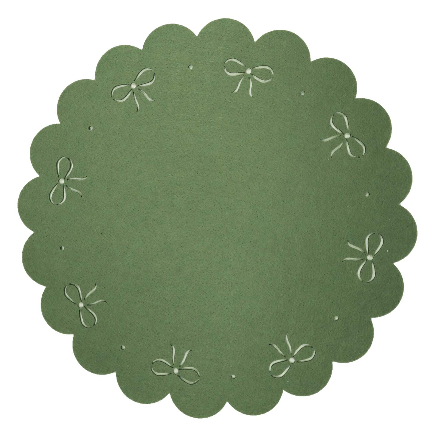 Rund Bordstablett, tallriksunderlägg RIBBON i filtmaterial med utstansade rosetter i grönt