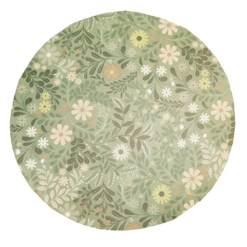 Rund Plasttablett, tallriksunderlägg BACKA med blommor i grön bottenfärg