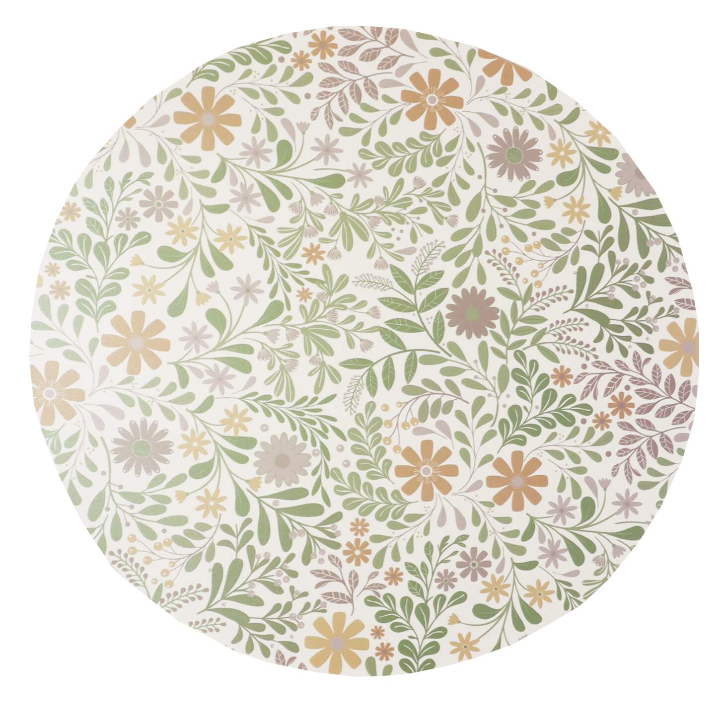 Stl. Diameter 38 cm, Söt bordstablett, tallriksunderlägg BACKA med små blommor och blad. Torkas av med fuktad trasa