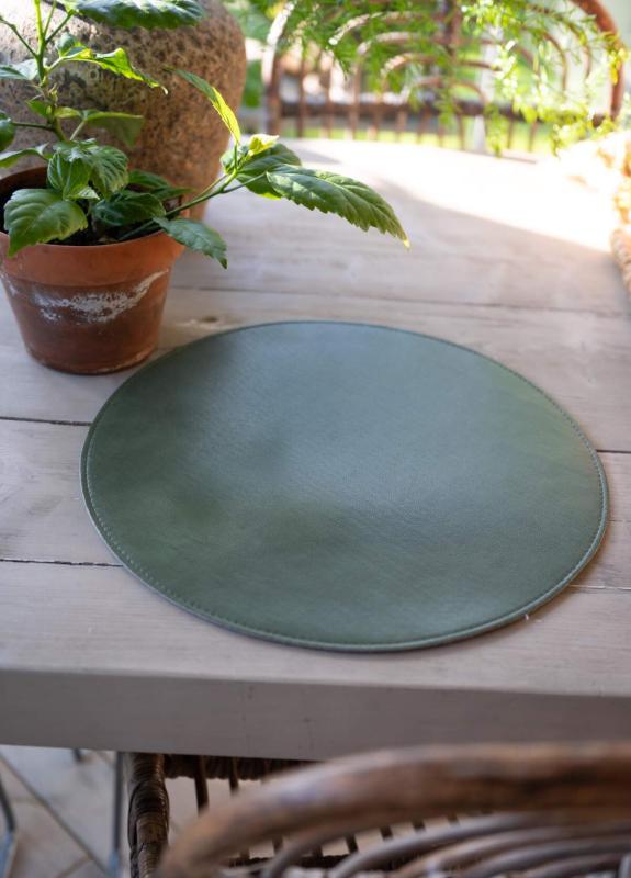 Rund Tablett MOANA, enfärgad med läderlook i skogsgrönt