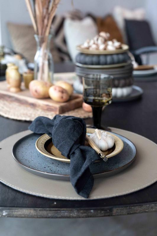 Stl. diameter 38cm. Tablett Moana är en rund enfärgad tablett som även kan användas som duk. Moana ger en tuff och industriell look till dukningen.
