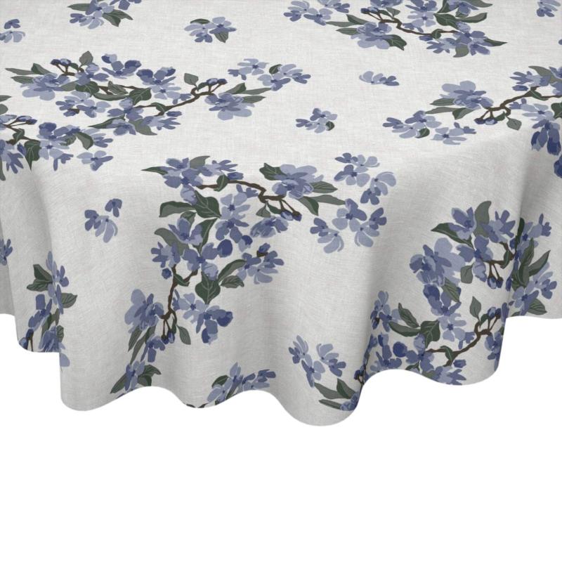 Rund Vaxduk ELSIE med vackra äppelblommor i blått