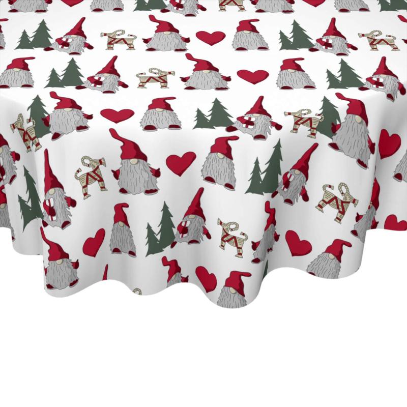 Rund Vaxduk NOEL med tomtar, hjärtan, granar och julbockar
