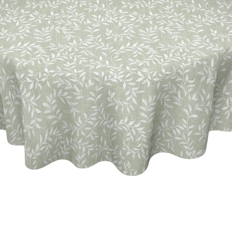 Rund Vaxduk SMALL LEAF, små vita löv på grön botten, diameter 140cm