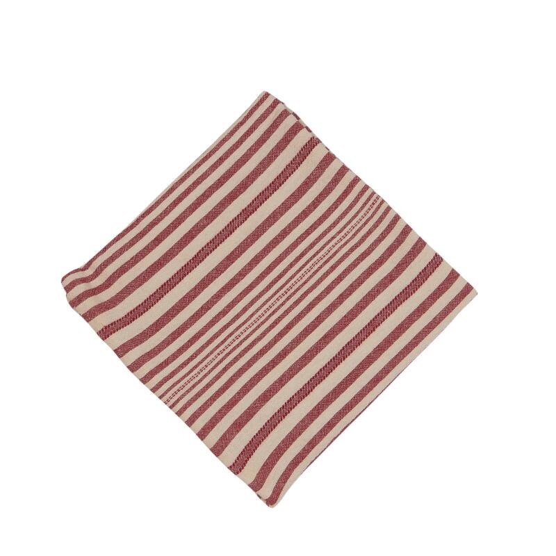 Servett eller liten duk KARIN garnvävd, smalrandig i rött, enzymtvättad