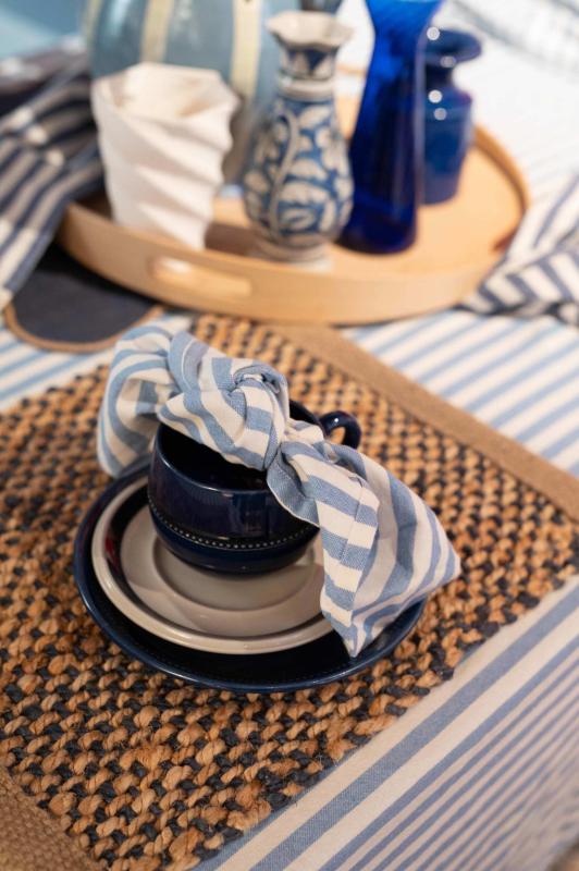 Servett eller liten duk SVEA, klassiskt randig i ljusblått