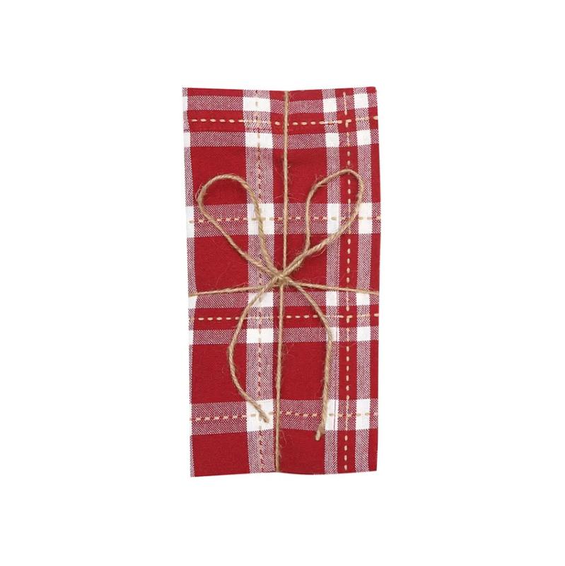 Fina, rutiga julservetter. De är tillverkade i 99 procent återvunnen textil, med strävan efter att ha så lite negativ miljöpåverkan som möjligt. På så sätt kan du göra fint hemma, samtidigt som du värnar om både människor och natur.