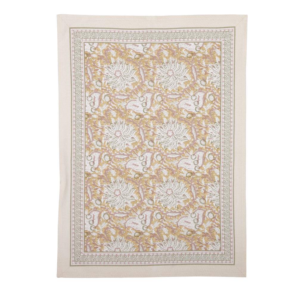 Kökshandduk DANTE, blommig i gult med bård runt om