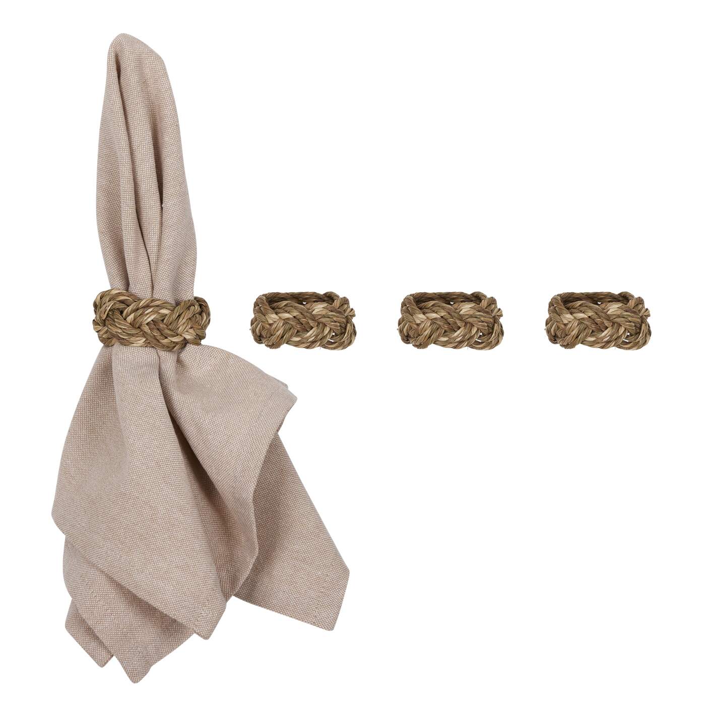 Stl. H 2,5 CM / Ø3,5 CM. Servettring TRULS flätad av 100% sjögräs ger en naturlig och rustik känsla till dukningen. Det handgjorda utseendet och den varma, organiska tonen gör den till en vacker detalj som kompletterar både vardagliga och festliga bord.