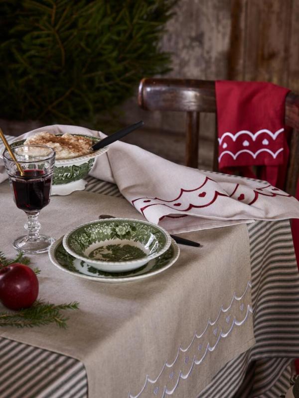 Duka gärna med matchande servetter och addera en bordsfilt under duken för en riktig lyxig dukning.