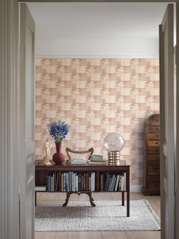 Tapet Mimi, Swedish Grace, trädgård och antika byggnader, beige, aprikos, rosa