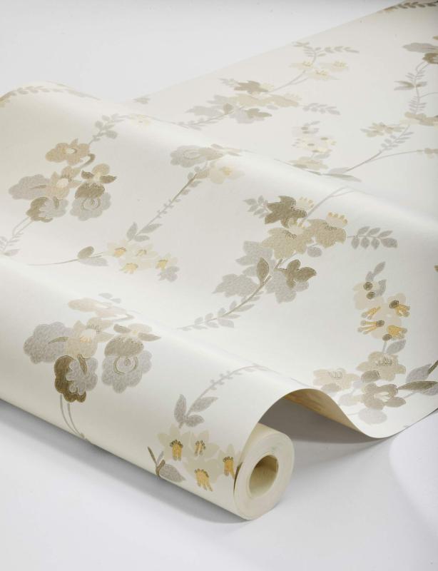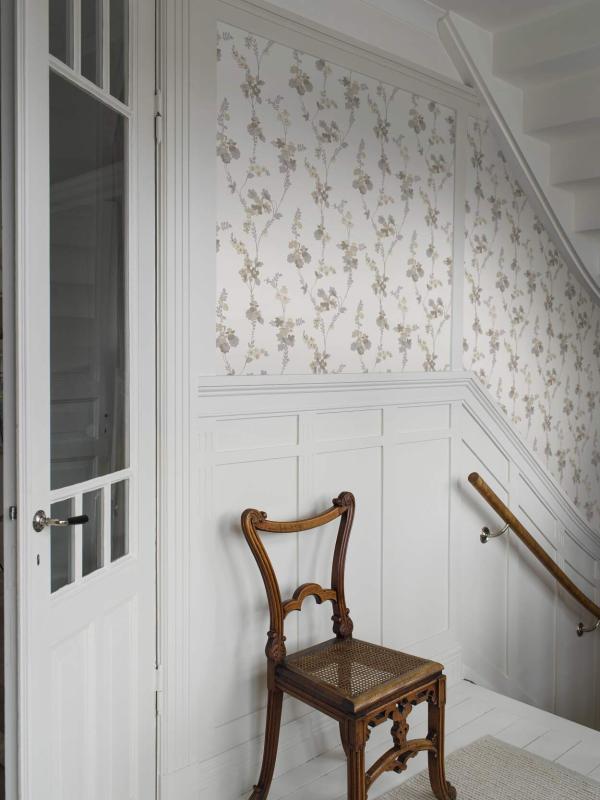 Tapet Vera, Swedish Grace, blommig 20-tals tapet, cremevit bottenfärg, gråbeige blommor