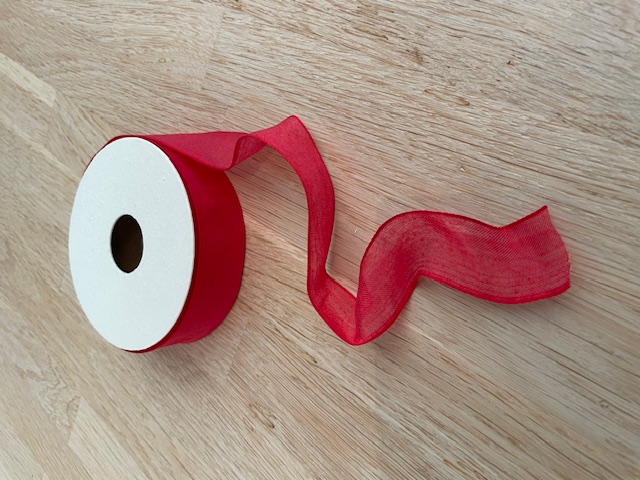Textilband BATISTE, enfärgat julrött lite tunnare band med ståltrådskant