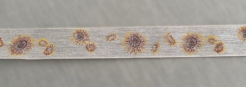 Textilband, linnefärgad med tryckta gula solrosor och ståltrådskant