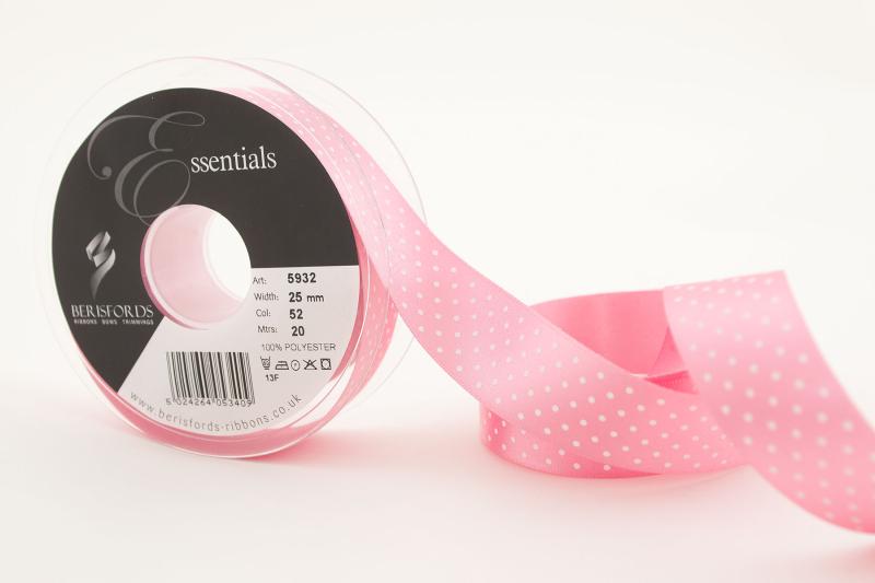 Textilband MICRO DOT, småprickigt satinband i två olika bredder, rosa