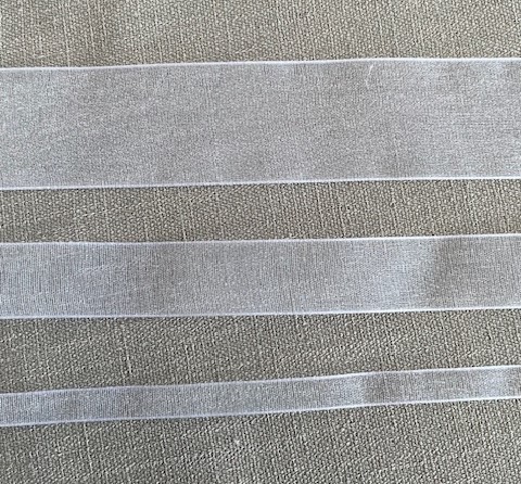 Textilband, organzaband i antikvitt i tre bredder med lyster
