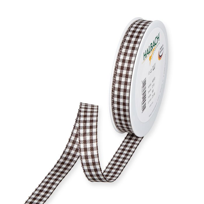 Textilband RUTIGT GINGHAM, finns i två olika bredder, brun/offwhite