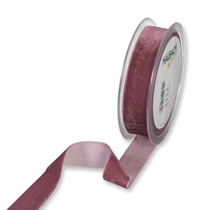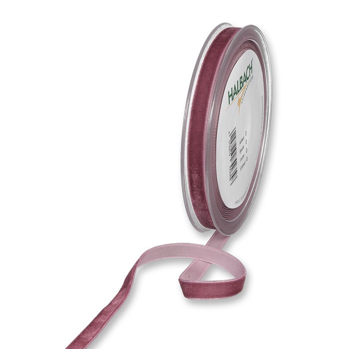 Textilband SAMMET, enfärgat ljungrosa sammetsband, bredd 10 och 25 mm
