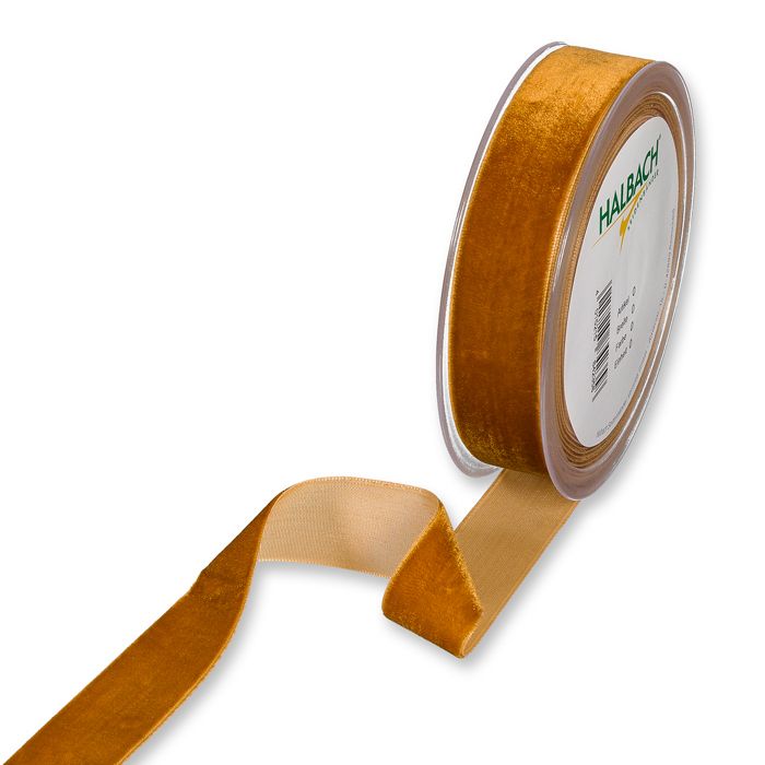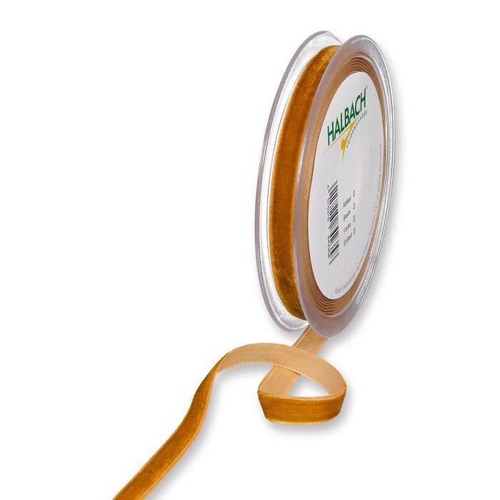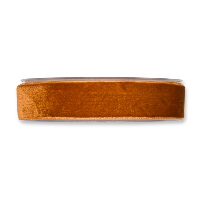 Textilband SAMMET, enfärgat sammetsband i konjaksfärg, bredd 10 och 25 mm