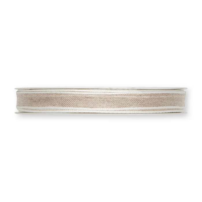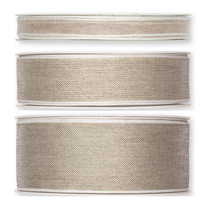 Textilband, vävt linnefärgat band i tre bredder med ståltrådskant i vitt