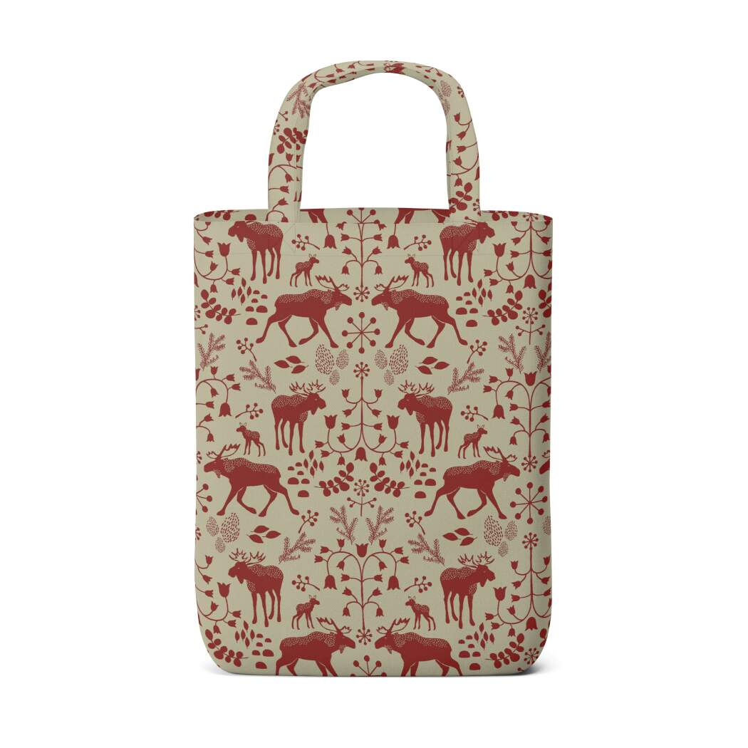 Praktisk sydd bärkasse i tyg i snygg design. Nu kan du styla med en snygg kasse med älgar på.