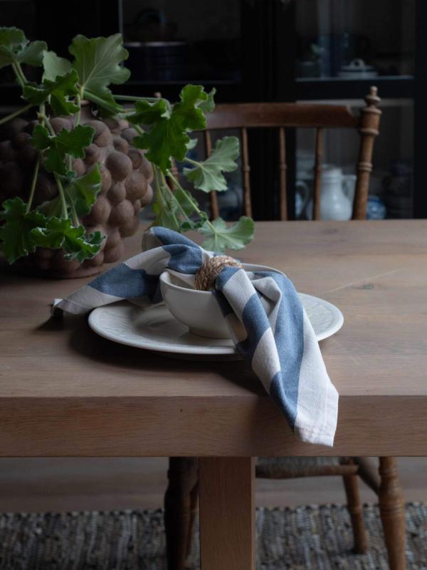 Tygservett eller liten duk AMALIA, bredrandig i marinblått och offwhite