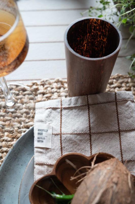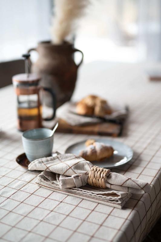 Tygservett, liten duk Axel med vävda rutor i kastanje brunt och beige.