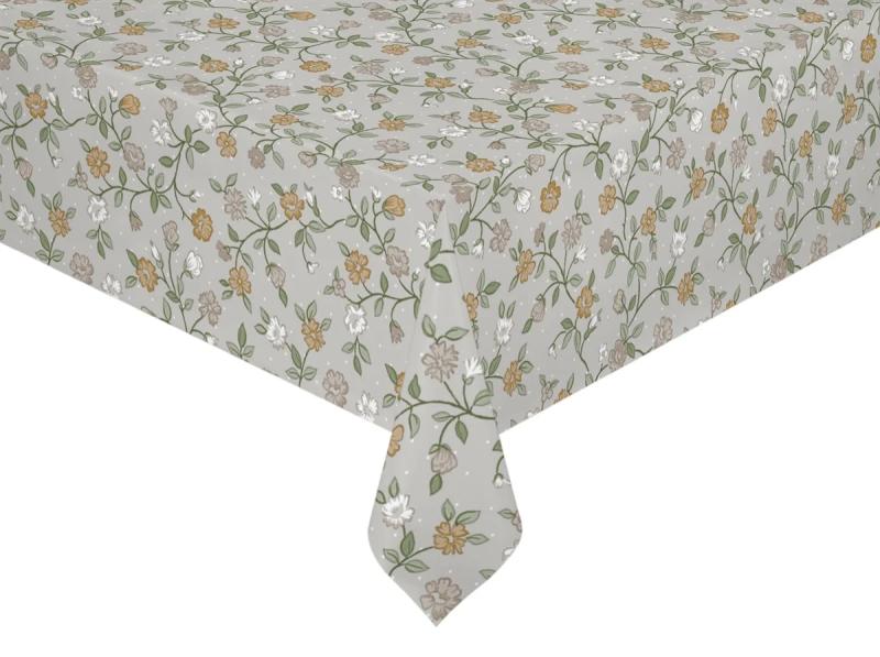 Vaxduk LOTTA på metervara med beige små blommor och blad på linne botten