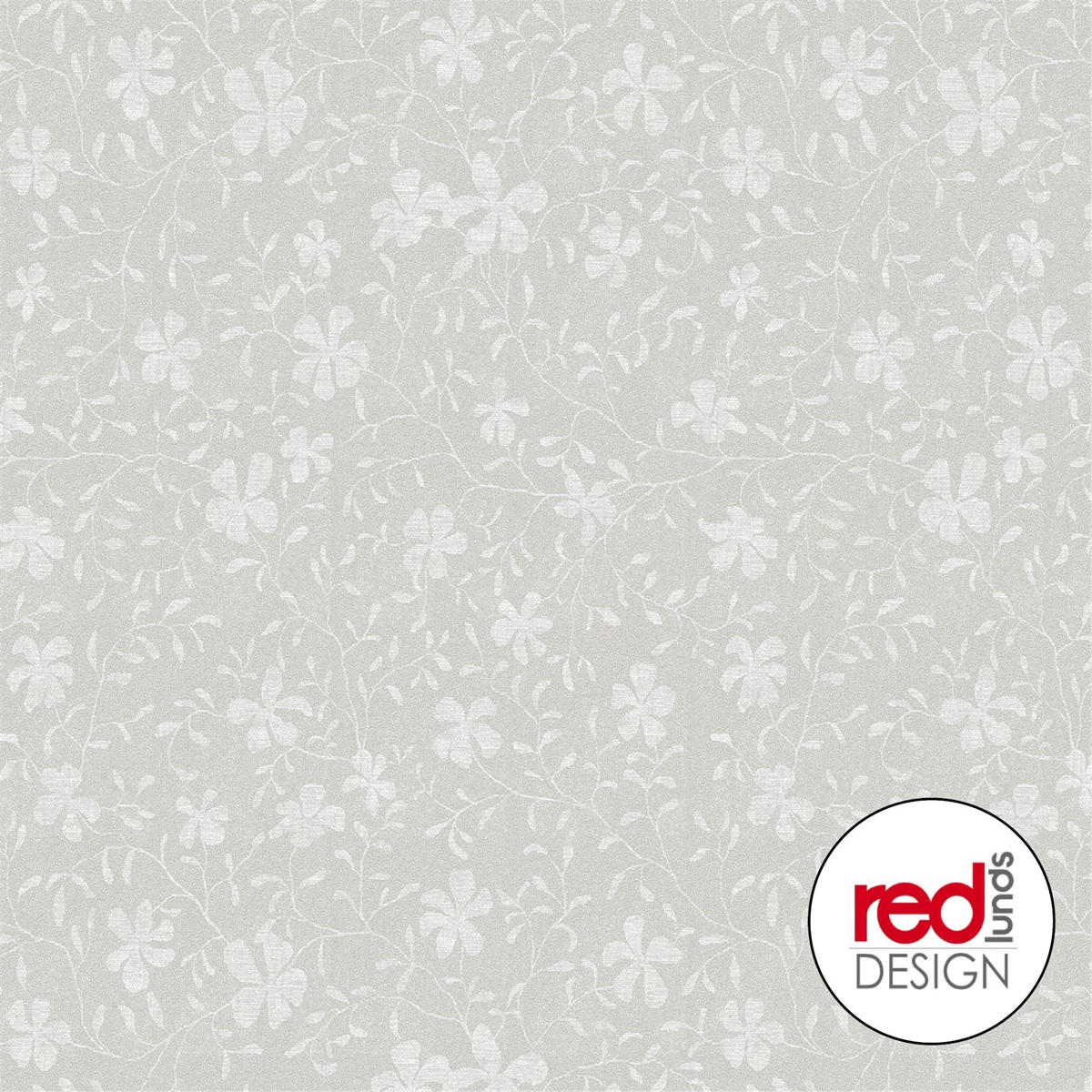 Vaxduk på metervara med vita blommor och blad på vitprickig ljusgrå bakgrund